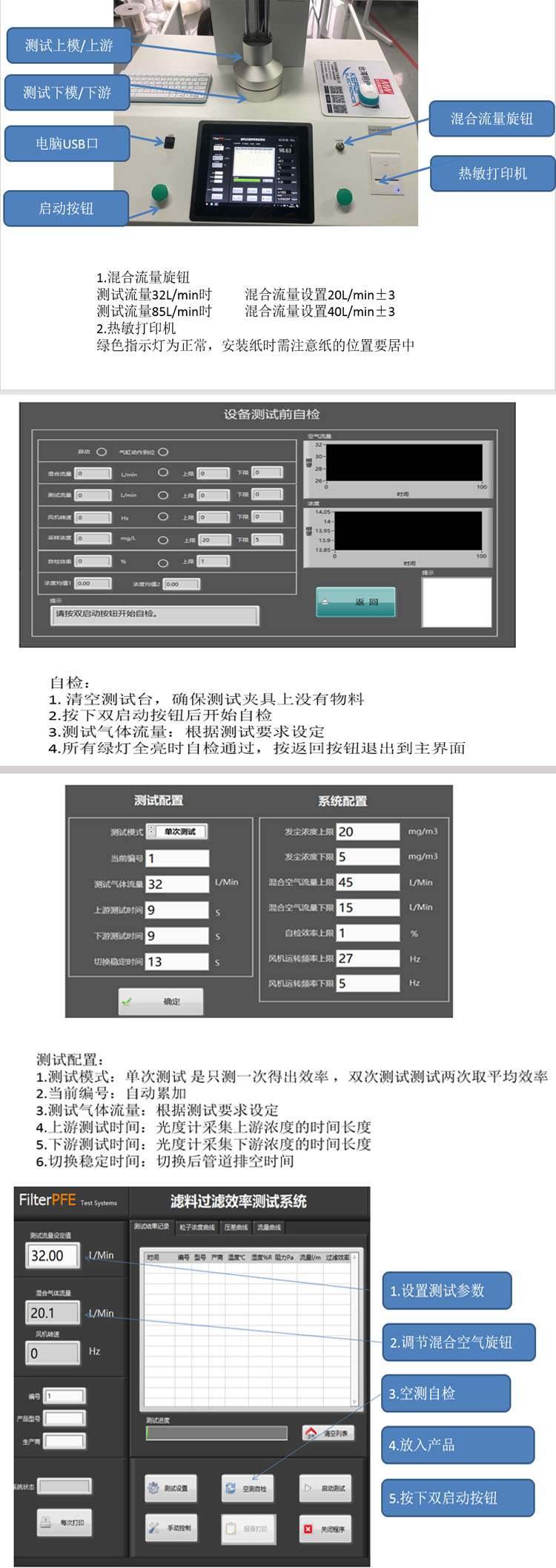 7、操作簡單:用戶只需將試樣放置于夾具中,按下按鈕,調節測試流量后系統就會通過控制器自動測試阻力和效率,整個過程簡單,快速、高效。