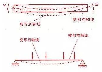 平面彎曲:當外加力偶M 或外力F 作用于桿件的縱向平面內時,桿件將發生彎曲變形,其軸線將變成曲線。