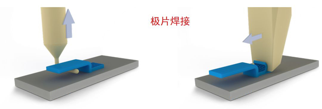 目前正在使用的連接技術(shù),包括超聲引線鍵合、激光帶式鍵合或者極片點(diǎn)焊(激光或者電阻焊接),如圖3所示。每種技術(shù)都有各自的優(yōu)缺點(diǎn),見表1。其中,超聲引線鍵合是半導(dǎo)體行業(yè)的一項(xiàng)成熟的技術(shù)。該過程高速,適用多種金屬如金、銅或鋁,連接十分靈活。如果電芯組裝有錯(cuò)位,允許“s”形連接。缺點(diǎn)是連接的強(qiáng)度取決于連接表面的清潔度。不管使用哪一種技術(shù),電芯連接強(qiáng)度的測試對于理解是否已形成固鍵至關(guān)重要,從而減少后續(xù)電池產(chǎn)生故障的可能性。