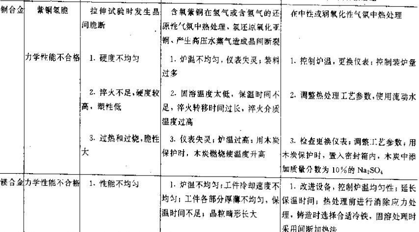 ▼表3 有色金屬熱處理常見力學性能缺陷及防止方法