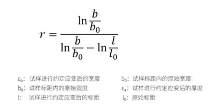 由于長(zhǎng)度和寬度的變形量比厚度的變形量更容易且更準(zhǔn)確地測(cè)量,因此在塑性變形量不超過最大力對(duì)應(yīng)的塑性伸長(zhǎng)量范圍內(nèi),可以使用體積不變?cè)韥?lái)計(jì)算塑性應(yīng)變比R值。 R值用于衡量材料在塑性變形過程中的各向異性程度。