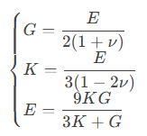 對(duì)于各向同性材料,三個(gè)基本模量可通過泊松比相互轉(zhuǎn)換:
