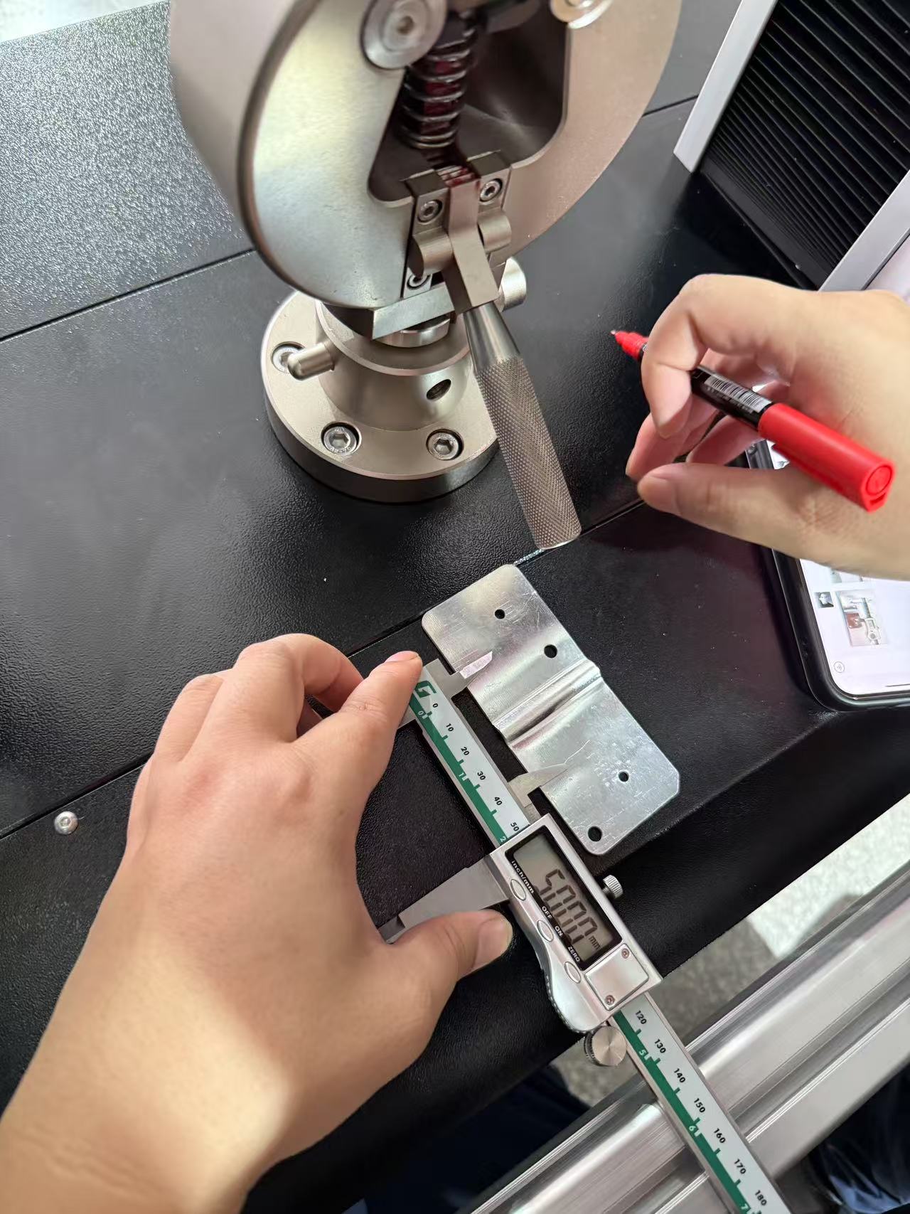 d檢查斷口位置:若斷裂在標(biāo)距外或夾持端,需重新試驗(yàn)
