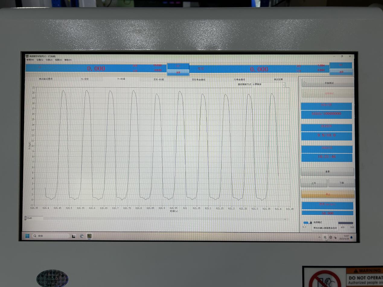 開始測試與監控:啟動測試,設備兩個工位將同步對試樣施加設定的循環載荷。系統會實時記錄循環次數、實際載荷、位移等數據。